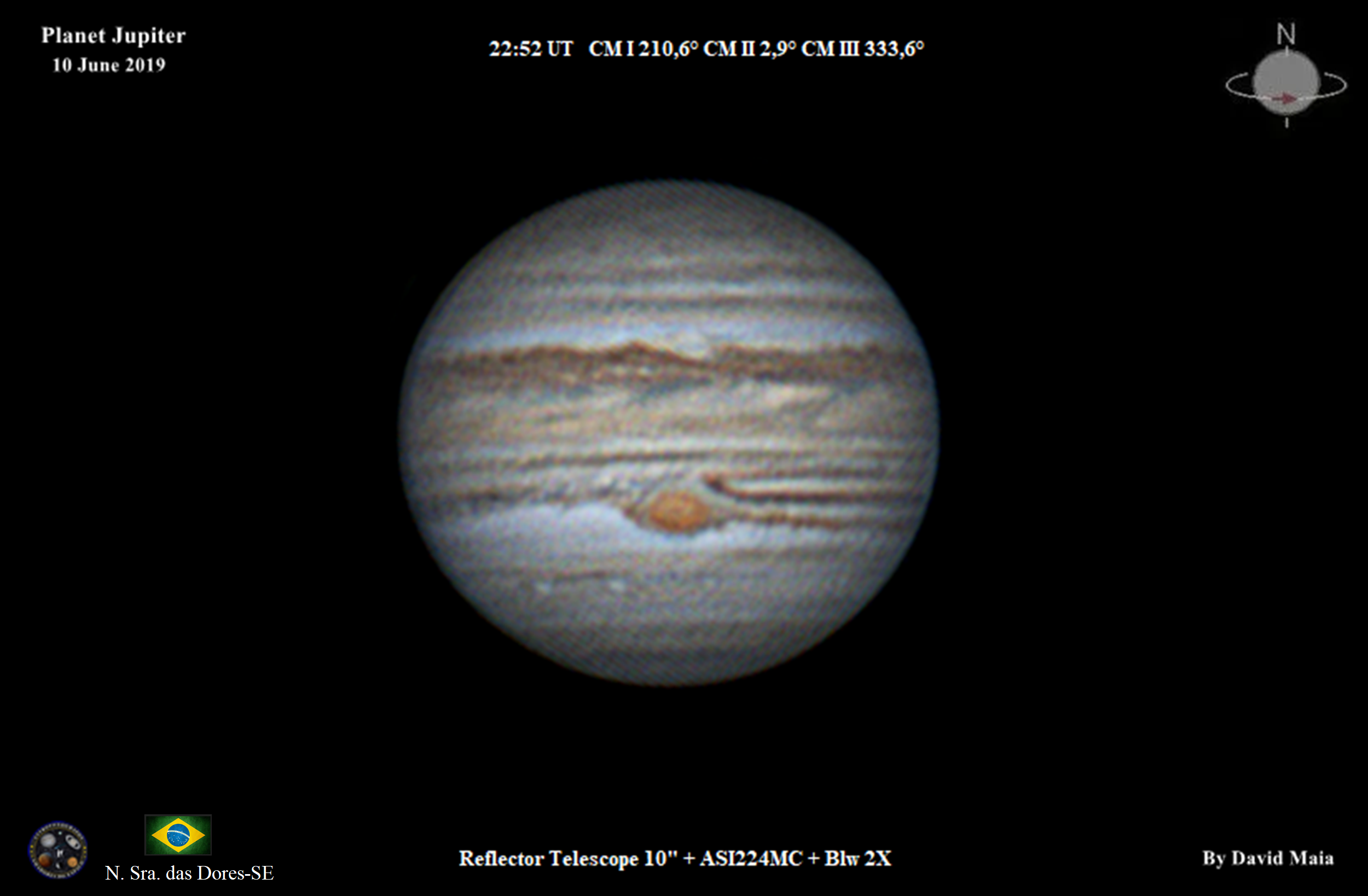 Leakage in the great red spot shows the material that came out of its hurricane being scattered in the gaseous clouds of Jupiter, a record captured at the beginning of June 2019;