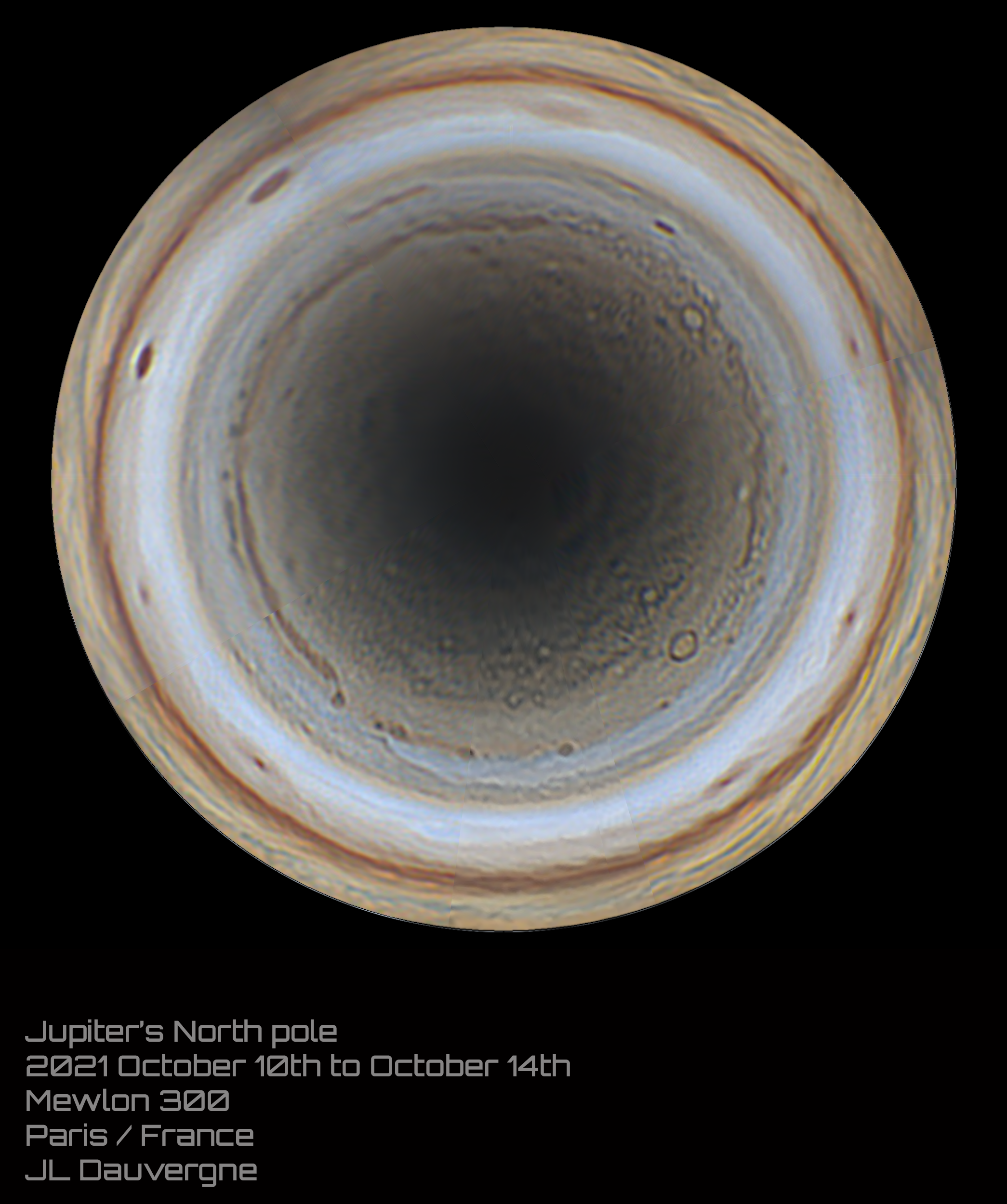 global polar map of jupiter realised with datas between october 10th and october 14th