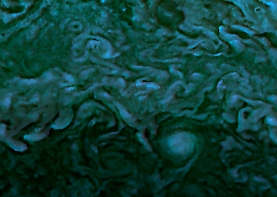 By changing the color of Juno's view of Jupiter's south pole and cropping, I was able to make an image similar to Vincent Van Gogh's "Starry Night" painting, showing that the Universe is full of artistic and beautiful sights.