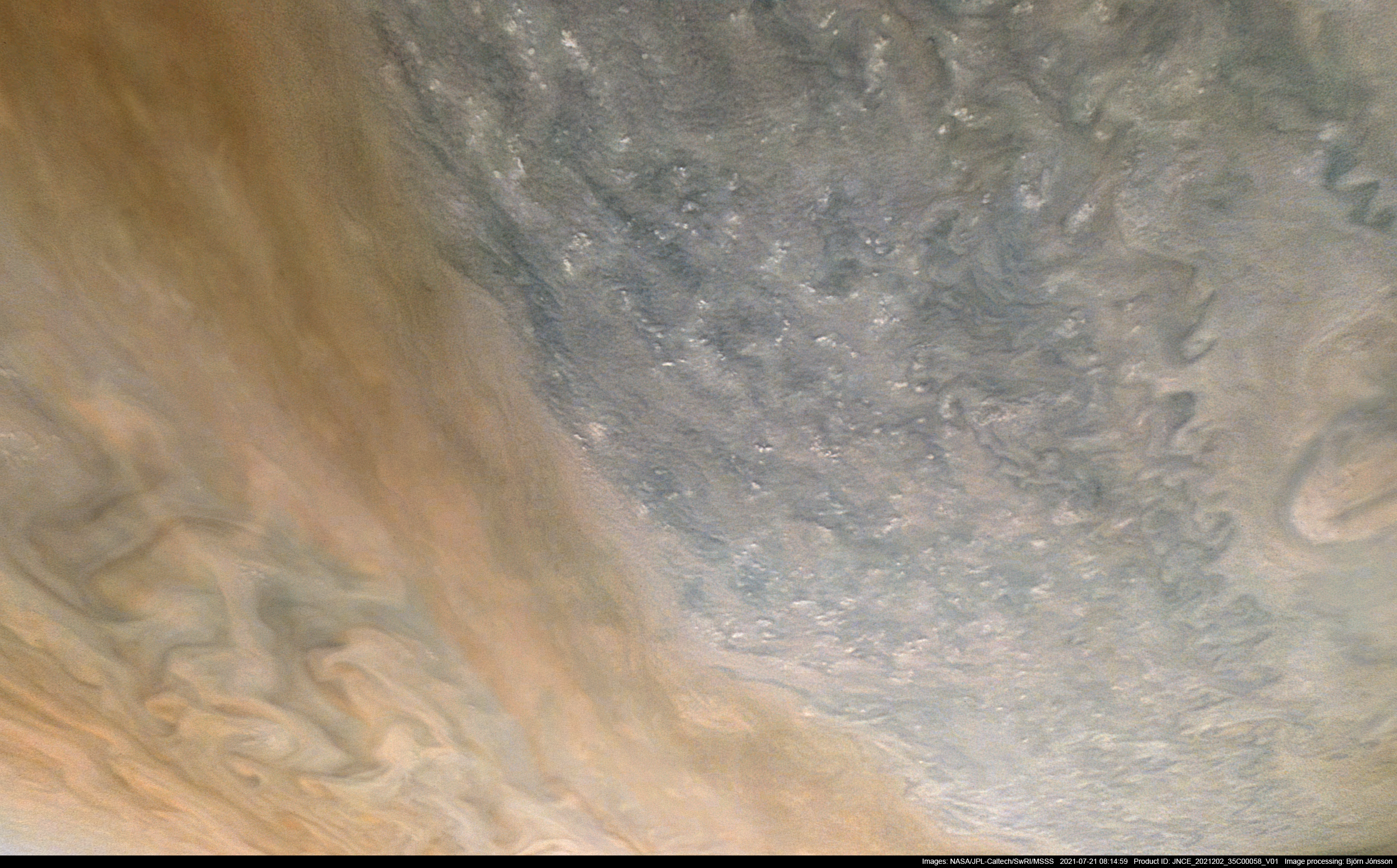 An image processed from the PJ35_58 raw image framelets. The contrast has been increased and small scale features sharpened.
