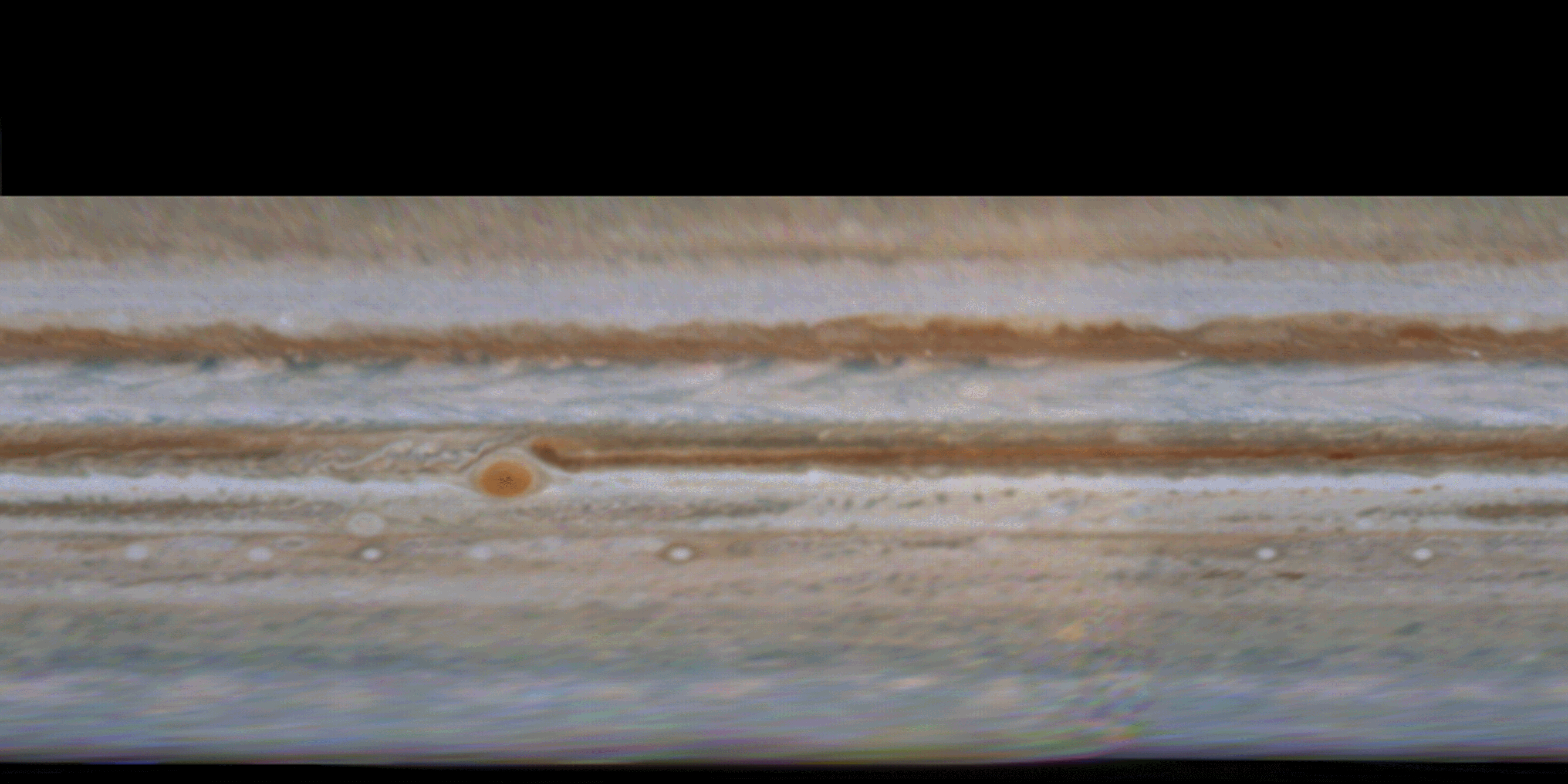 Junocam pixels are 12 bits deep from the camera but are converted to 8 bits inside the instrument using a lossless "companding" table, a process similar to gamma correction, to reduce their size. All Junocam products on the missionjuno website are in this 8-bit form as received on Earth. Scientific users interested in radiometric analysis should use the "RDR" data products archived with the Planetary Data System, which have been converted back to a linear 12-bit scale.