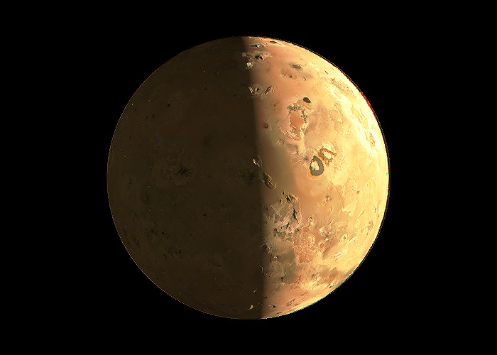 This is a true-color enhanced image of Io designed for sharpness. You can make out many details, including craters and volcanoes.