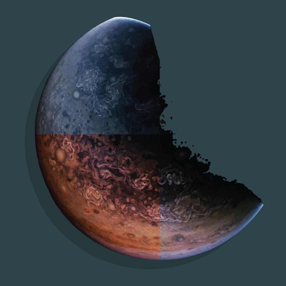 We invite you to download raw JunoCam images posted here and do your own image processing on them. Be creative! Anything from cropping to color enhancing to collaging is fair game. Then upload your creations here.