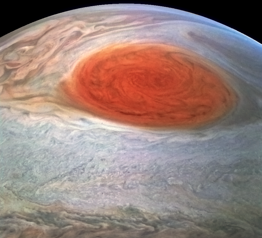 Enhanced view of the Great Red Spot near the upper limb