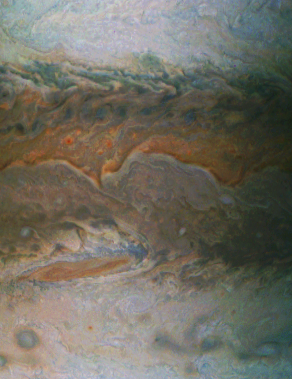Details of atmospheric disturbances below large red spot