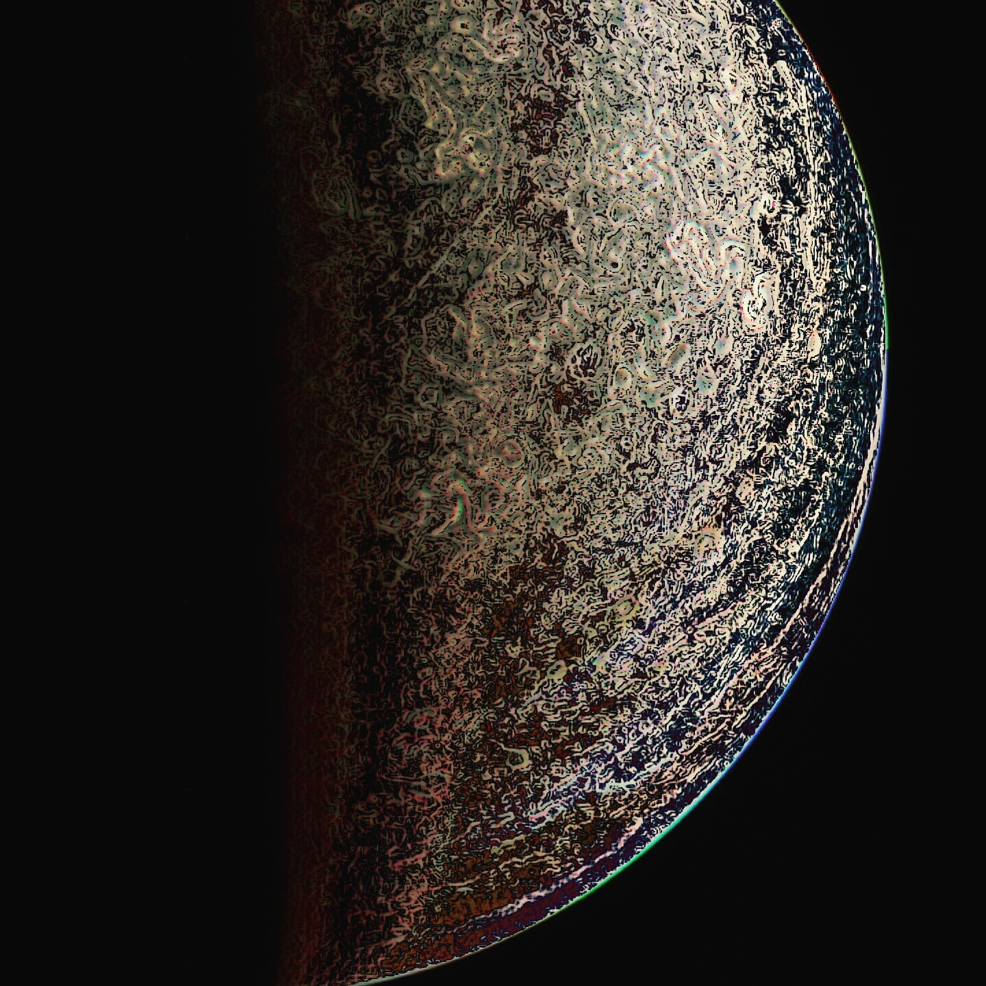 Junocam pixels are 12 bits deep from the camera but are converted to 8 bits inside the instrument using a lossless "companding" table, a process similar to gamma correction, to reduce their size. All Junocam products on the missionjuno website are in this 8-bit form as received on Earth. Scientific users interested in radiometric analysis should use the "RDR" data products archived with the Planetary Data System, which have been converted back to a linear 12-bit scale.