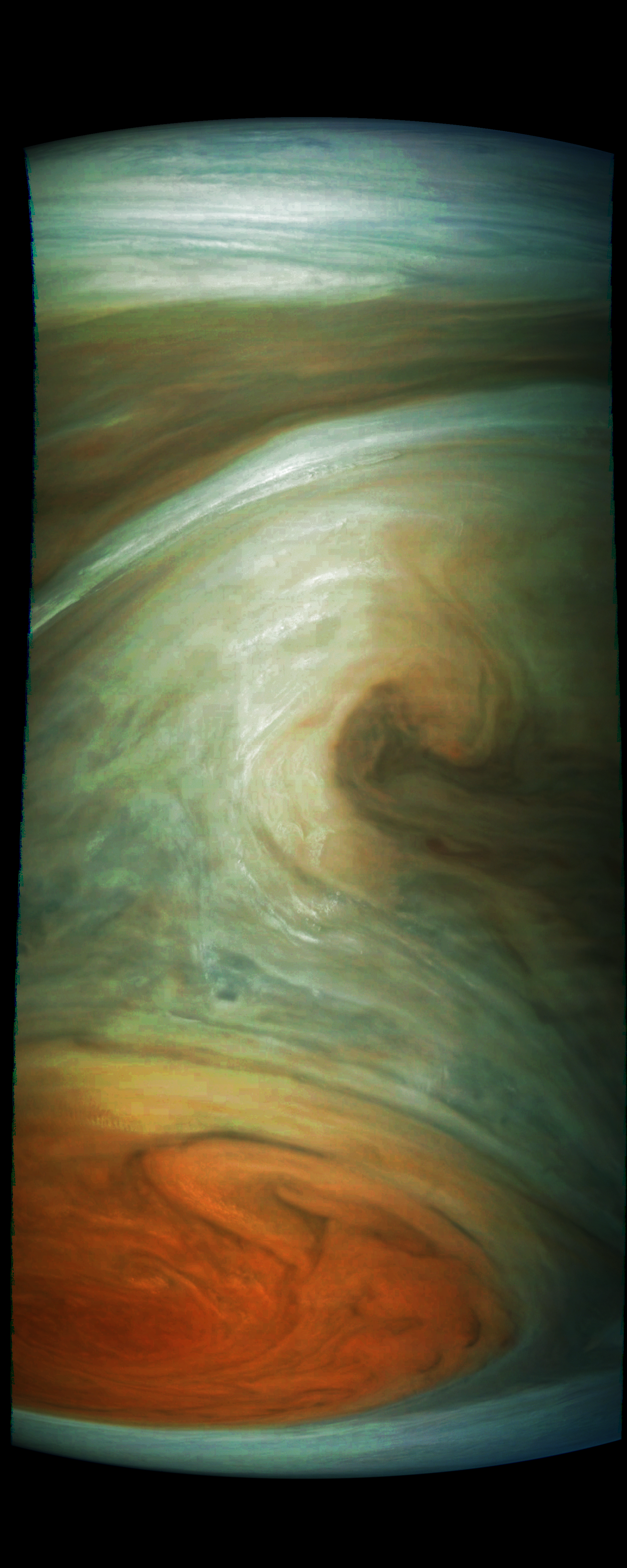 This image is derived from a raw Perijove-07 JunoCam image.