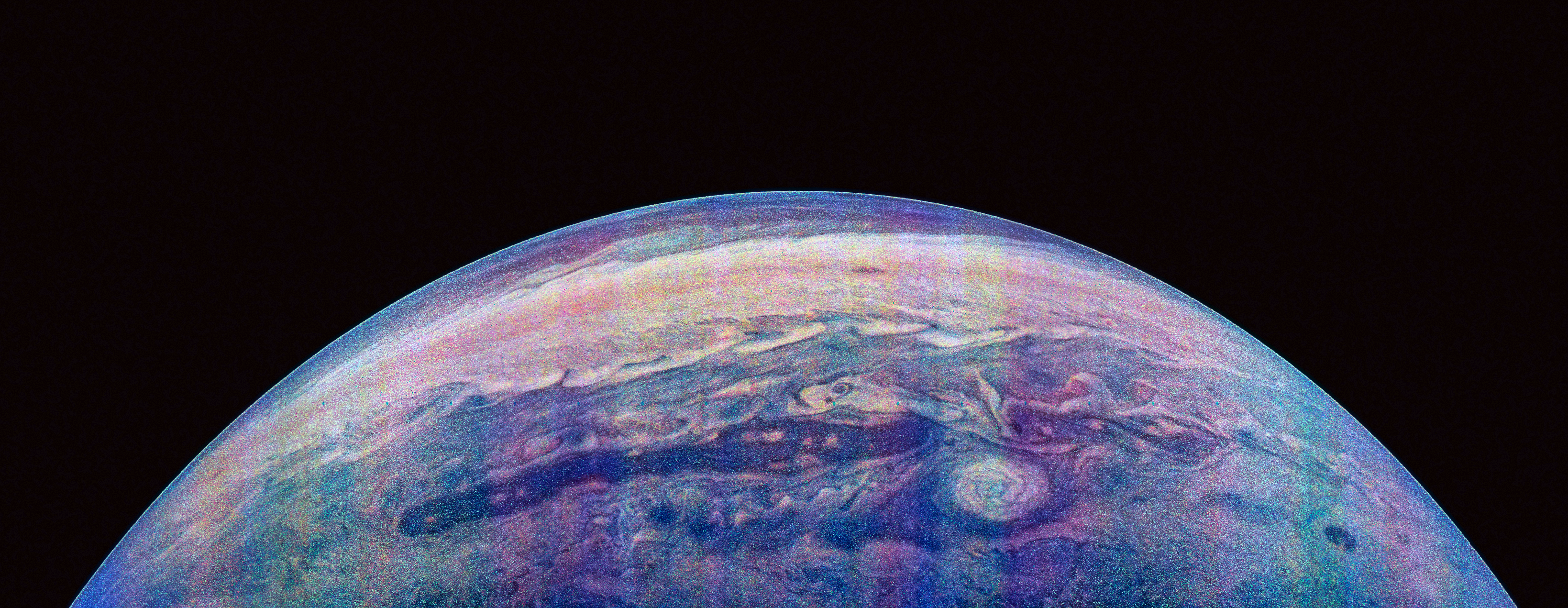 Junocam pixels are 12 bits deep from the camera but are converted to 8 bits inside the instrument using a lossless "companding" table, a process similar to gamma correction, to reduce their size. All Junocam products on the missionjuno website are in this 8-bit form as received on Earth. Scientific users interested in radiometric analysis should use the "RDR" data products archived with the Planetary Data System, which have been converted back to a linear 12-bit scale.