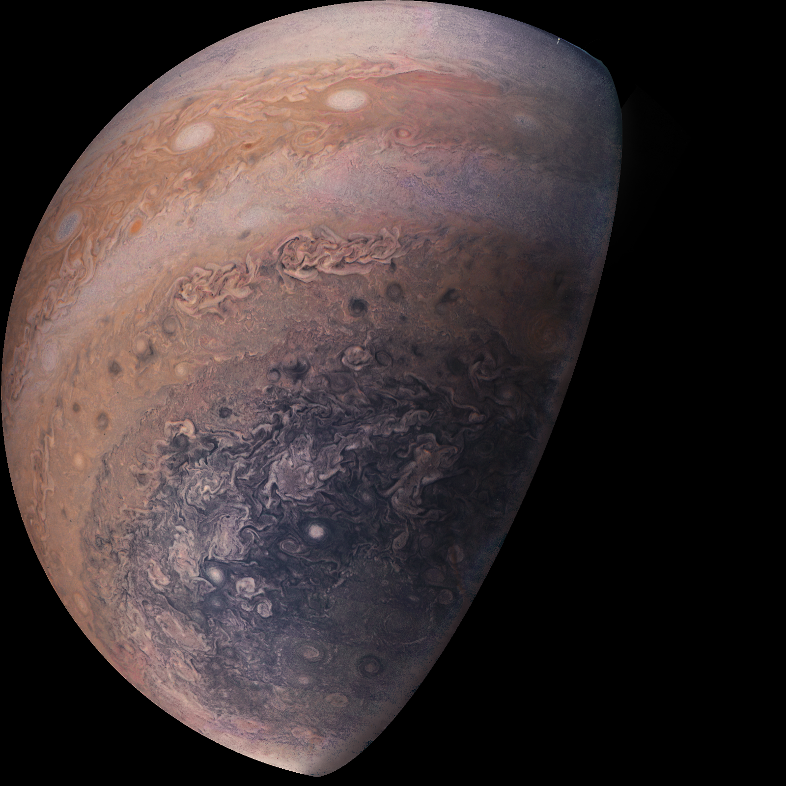 This image was processed carefully to enhace the natural colors captured by the JunoCam