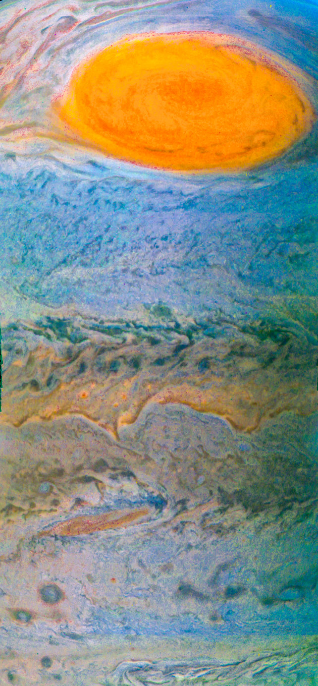 The storm activity on Jupiter has always fascinated me. I enjoyed bringing out the colors and giving them contrast in Photoshop.