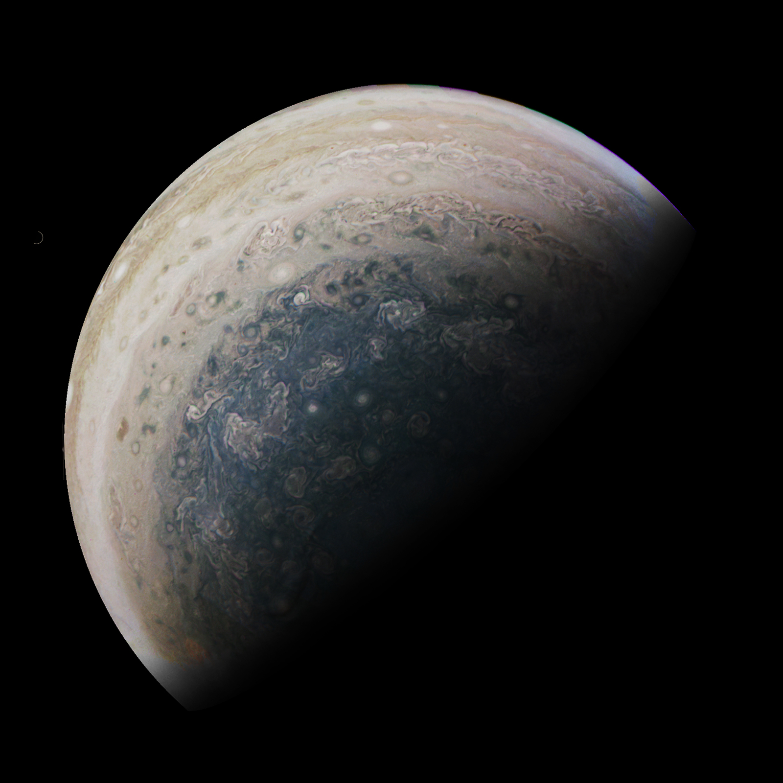 A special note about the Earth Flyby mission phase images: these were acquired in 2013 when Juno flew past Earth. Examples of processed images are shown; most contributions are from amateurs.