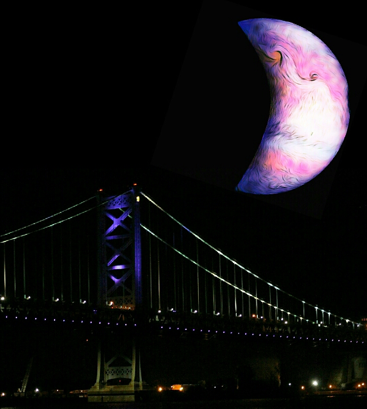 Jupiter, as it would look, over ben franklin bridge