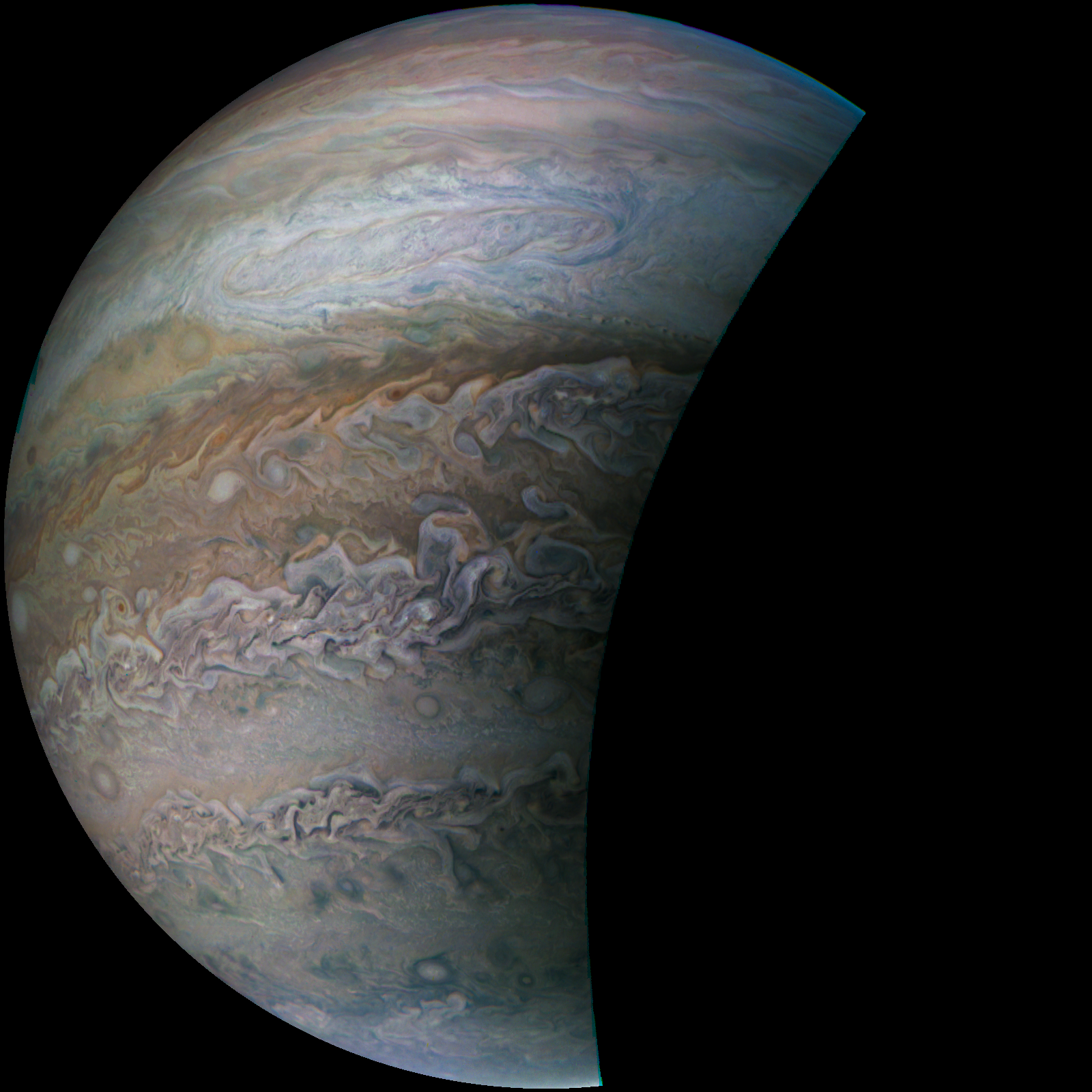 Appreciate the colors of wind in the clouds of Jupiter.