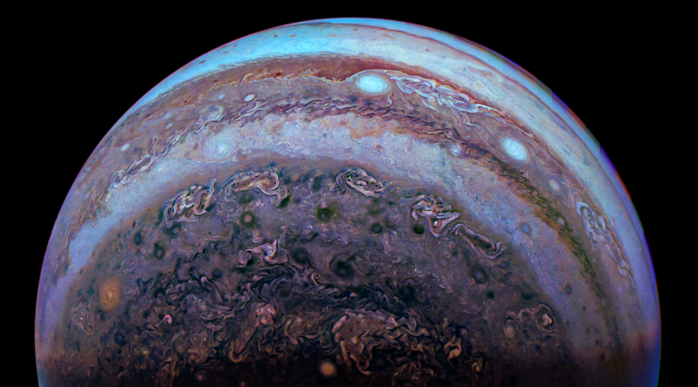 We invite you to download raw JunoCam images posted here and do your own image processing on them. Be creative! Anything from cropping to color enhancing to collaging is fair game. Then upload your creations here.