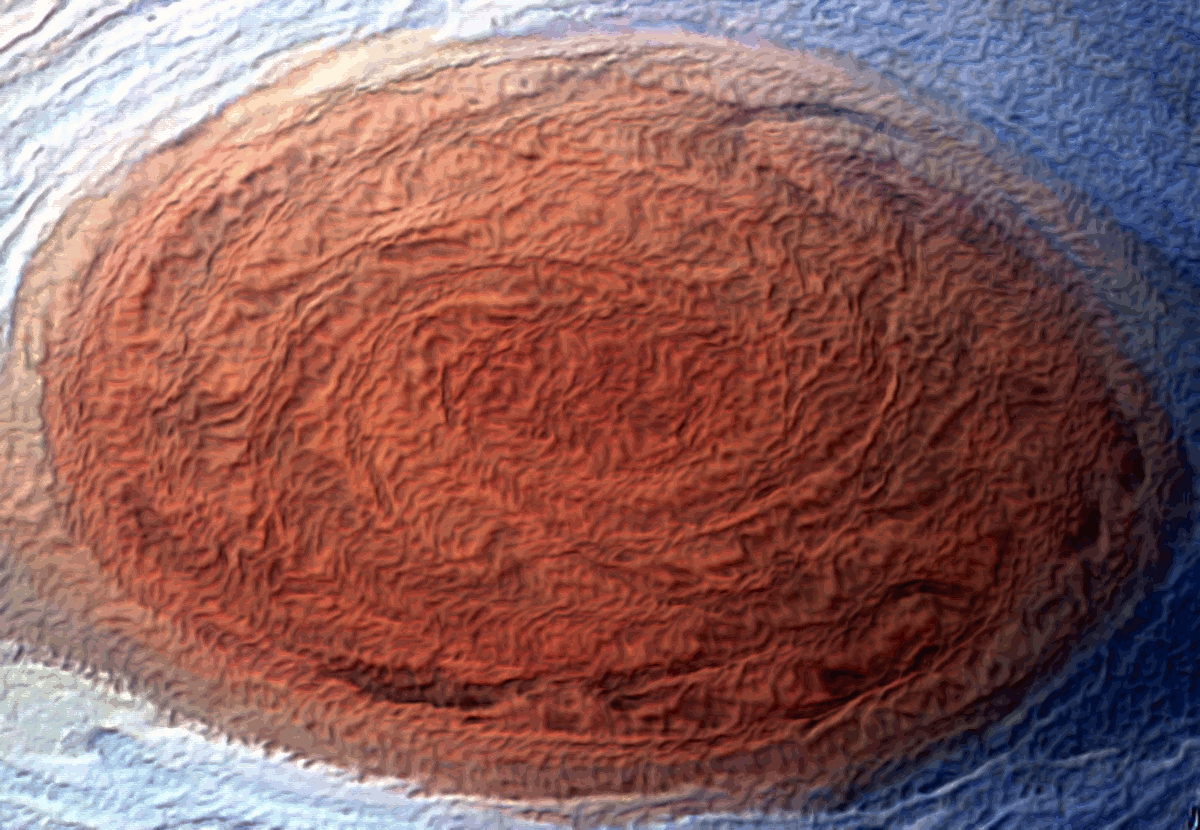 The Great Red Spot animated not with scientific or visual accuracy, but creatively done to help imagine the grand dynamics of the storm and how it would look to see it with movement.