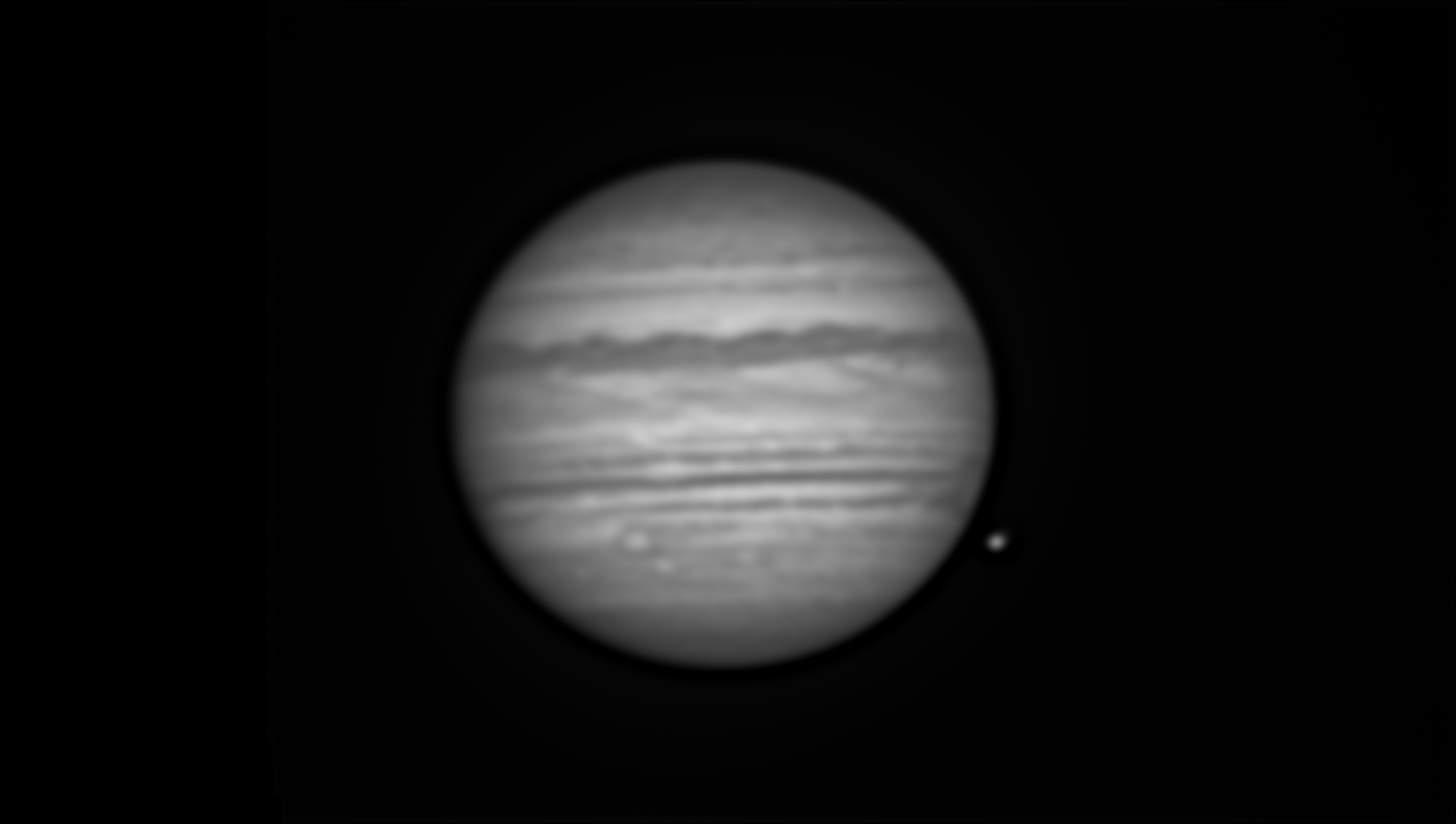 This monochrome image of Jupiter was taken in Ishigakijima Astronomical Observatory / NAOJ on May 25. We use green filter for the image.