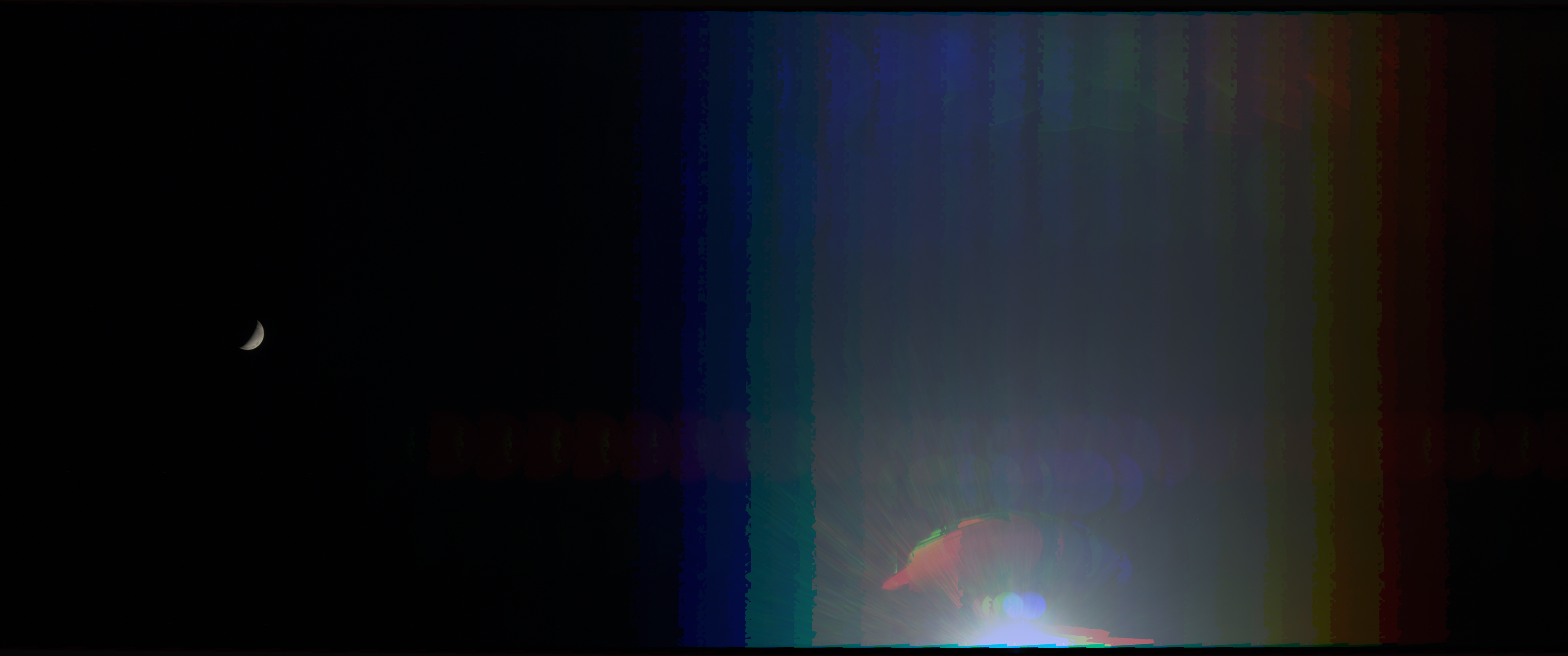 Ganymede and lens flare, as the edge of JunoCam’s field of view gets within 1.3º of the Sun. PJ24_01