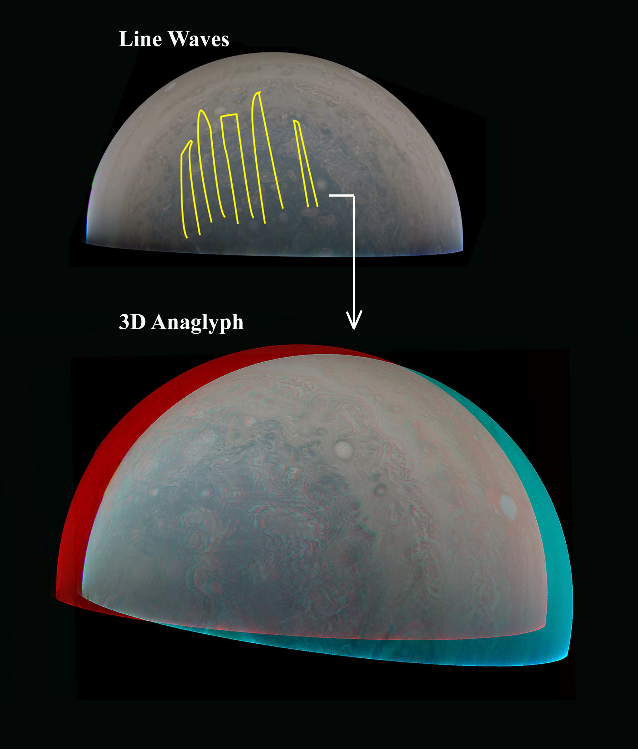 Anaglyph of Jupiter showing 3D features