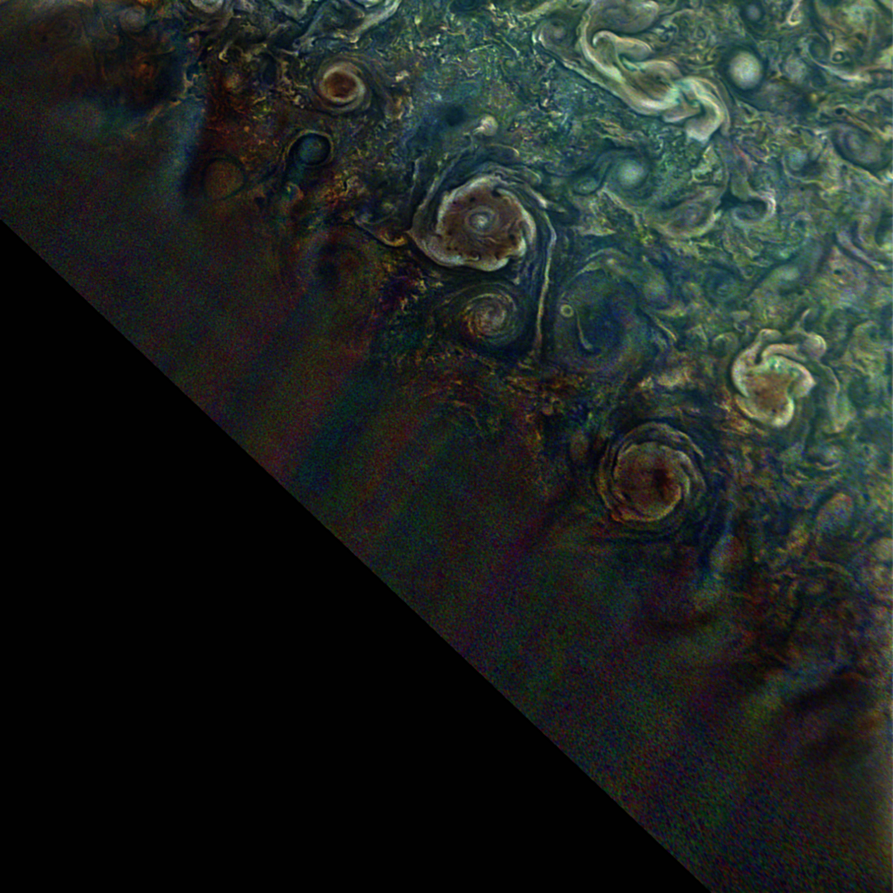 It is centered to Jupiter's north pole and covers a planetocentric latitude range from 75 to 90 degrees south.