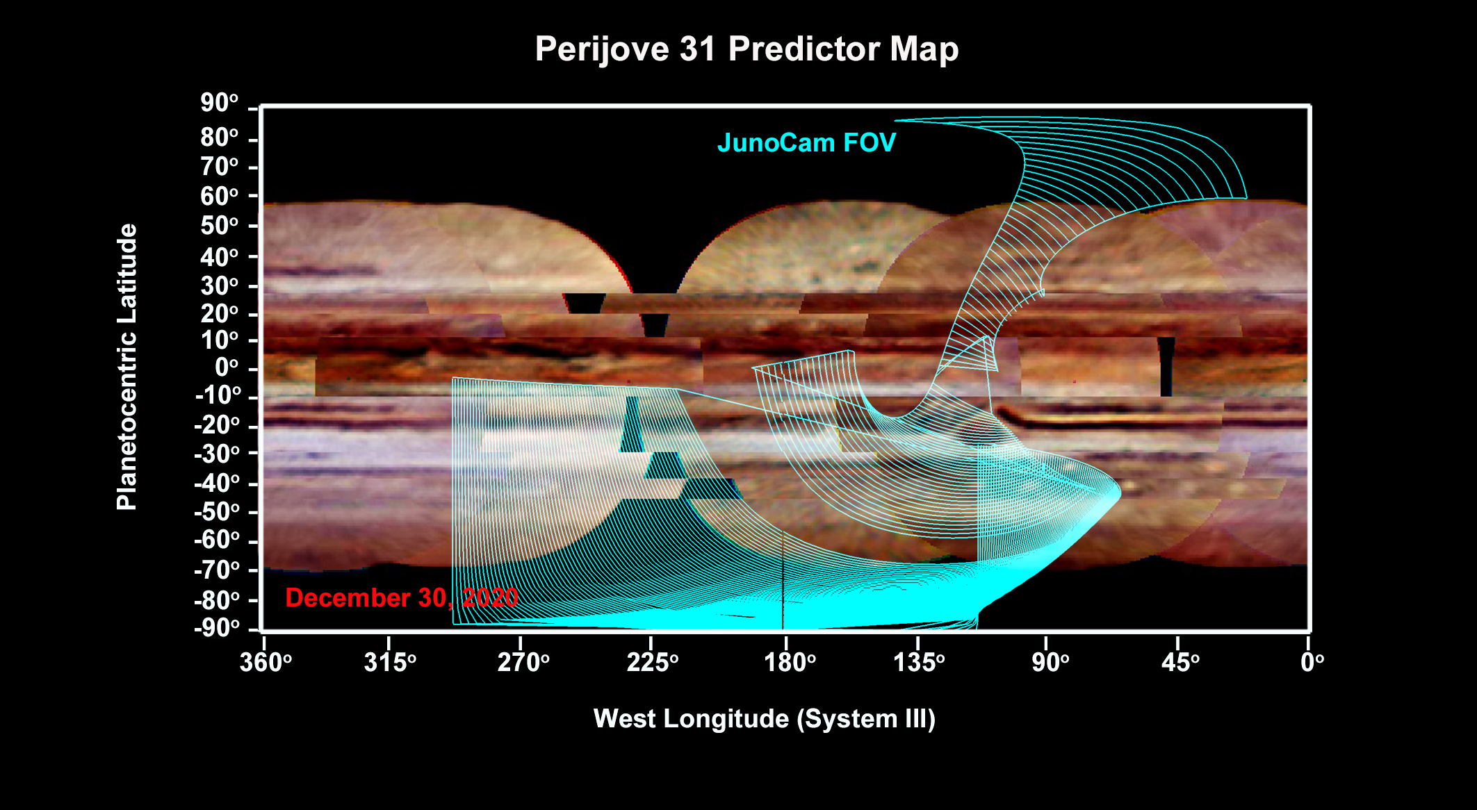 Here is our report on the JunoCam images at PJ31. Highlights include a flash of lightning detected in one of the northern circumpolar cyclones; closeup views of the NTB and NEB now that they have completed their big upheavals; a view of the convective plumes in the SEB following the GRS; and mapping of the southern circumpolar cyclones that confirms the cyclic motion of the pentagon. The text is attached here; the figures will be provided in two subsequent 'Comments'. --John Rogers.