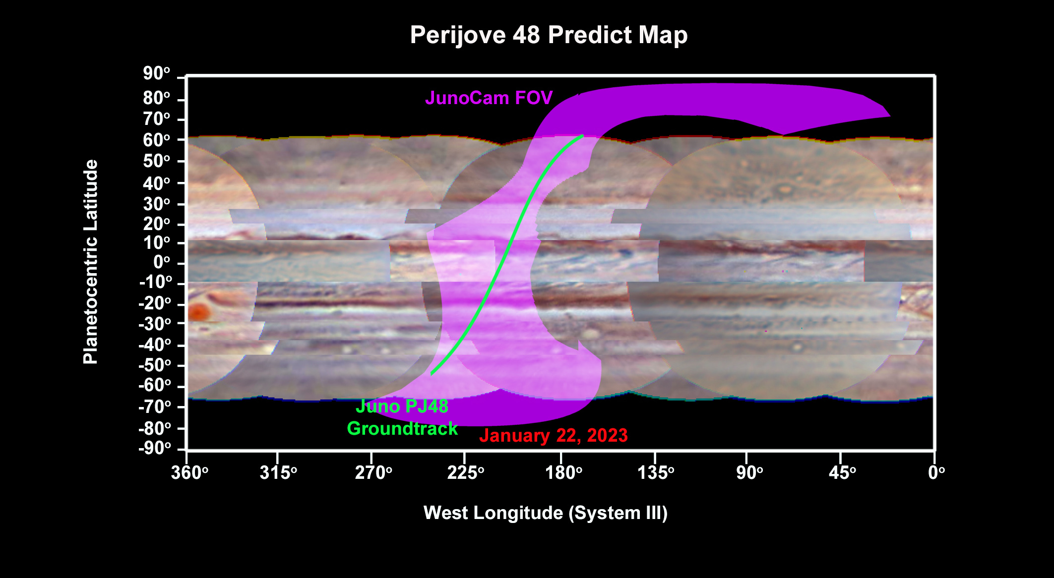 Although most of the PJ48 images were lost due to an apparent overheating issue, JunoCam returned to normal operation when the spacecraft was ascending over the southern temperate regions, so Gerald Eichstädt has produced global cylindrical maps and south polar projection maps as usual, covering the high southern latitudes in RGB and CH4. So I have prepared a brief report (attached here); Figures 1 & 2 present the RGB maps (to be attached in subsequent Comments). They confirm the continued existence of some ovals that are now hard to resolve in late-apparition ground-based images (e.g. S2-AWO-A2 and S4-LRS-1), and they continue JunoCam’s coverage of the south polar region. --John Rogers.
