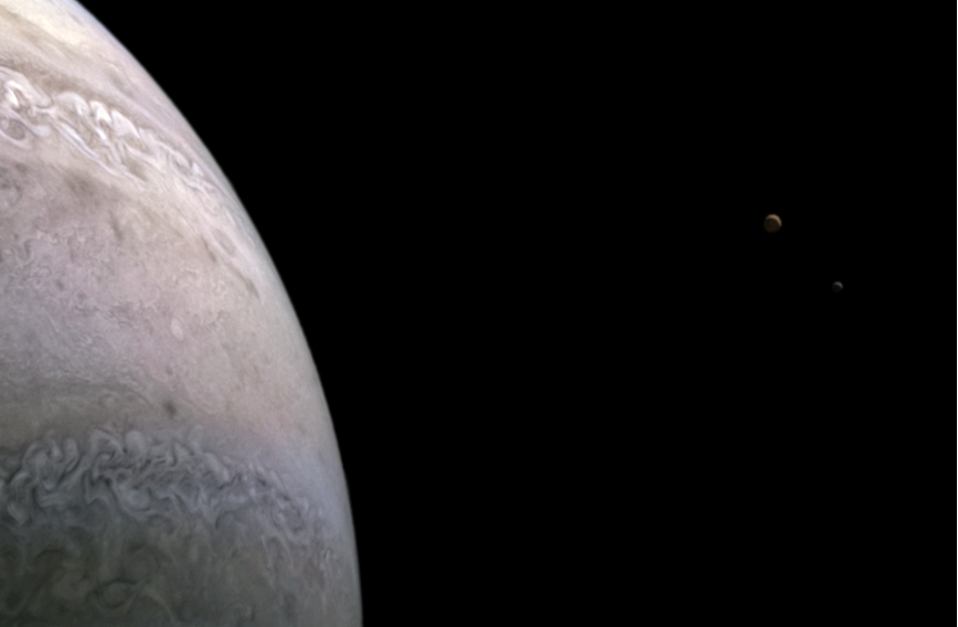NASA’s Juno Spacecraft Glimpses Jupiter’s Moons Io and Europa